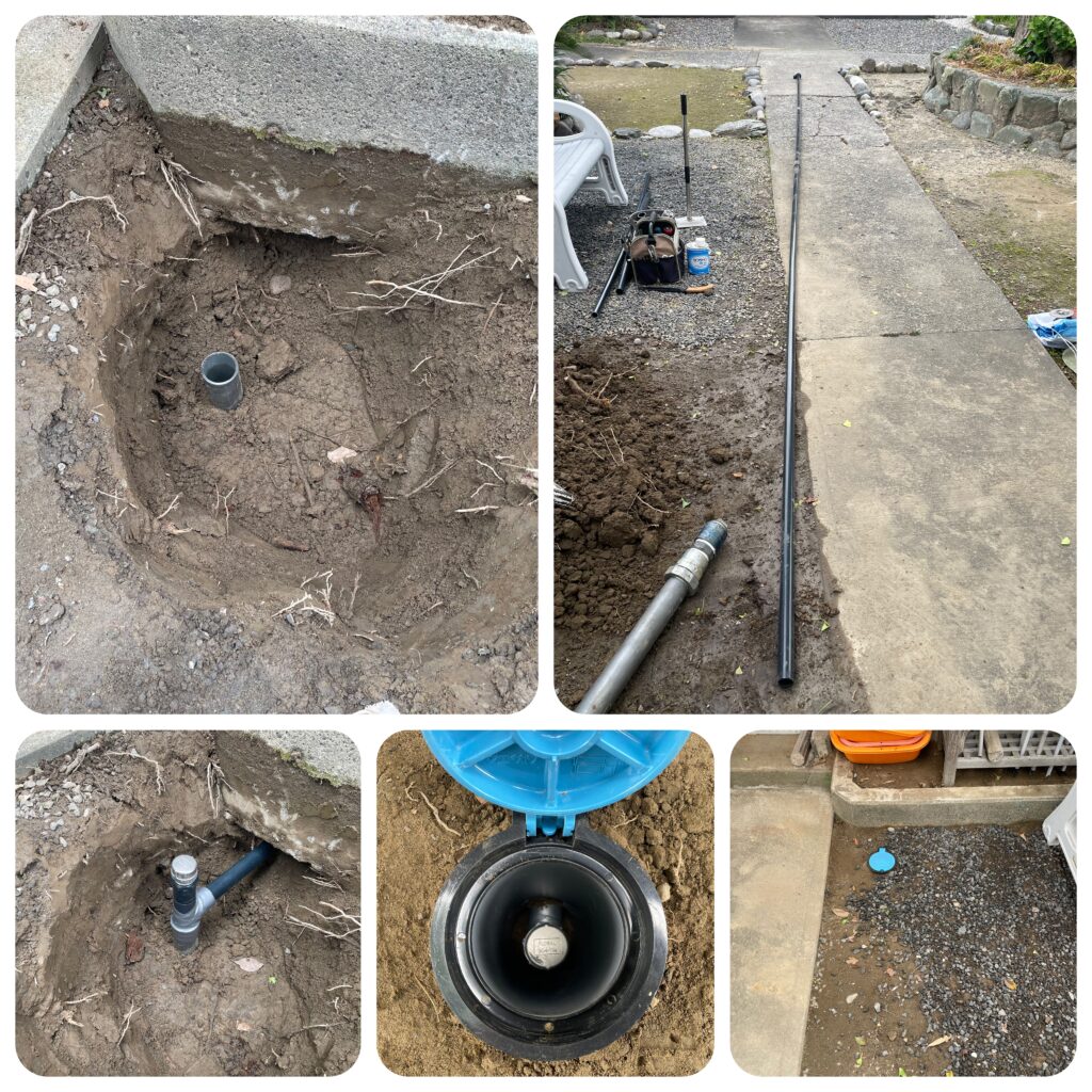 せっかく井戸ポンプを新しくしたこともあり、有事の際の非常用も兼ねて今後も井戸水は使用したいとのことで、打ち込み井戸の打ち直しをご用命くださいました。