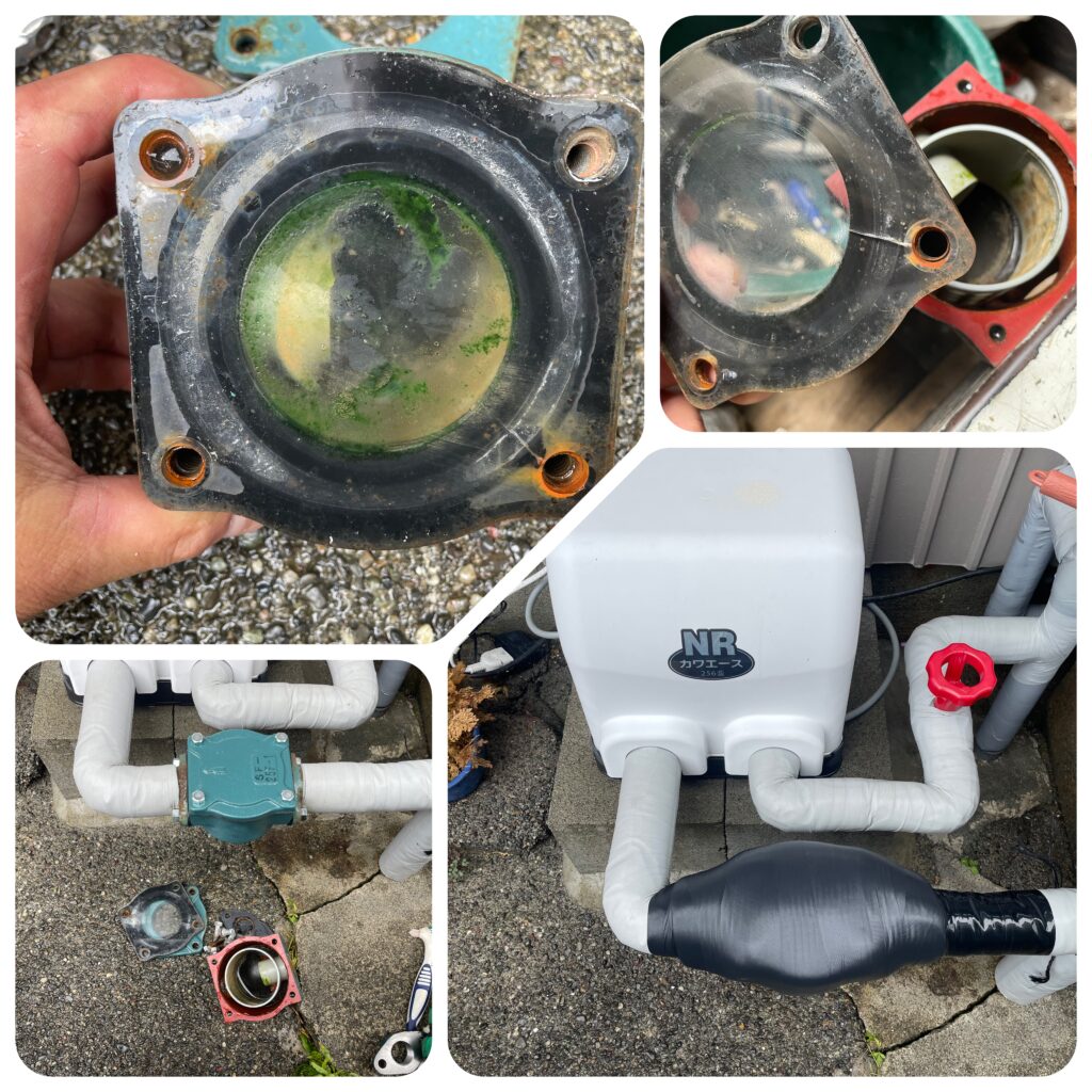 以前ポンプを交換させていただいたお客様から、砂濾器に藻が発生してしまったので見てもらいたいと連絡がありました。