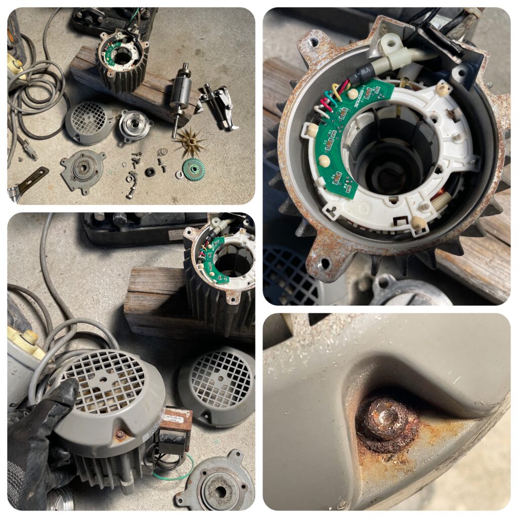 リセット復旧しても稼働直後に基盤の安全装置が働いて再びモータを止めてしまう状態でした。