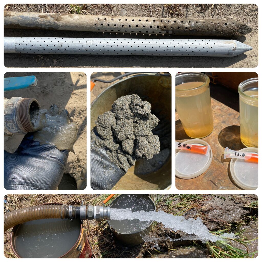 その後11mまで打ち込み汲み上げてみると、砂は荒くなったものの砂の排出が収まる気配はありませんでした。