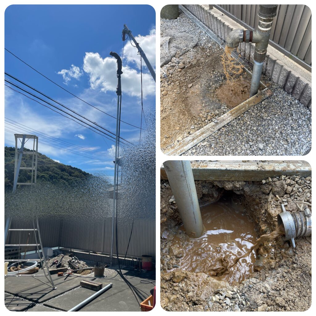 その数ヶ月後に完全に井戸水が出なくなってしまい、緊急対応で仮設バイパス配管を行いました。