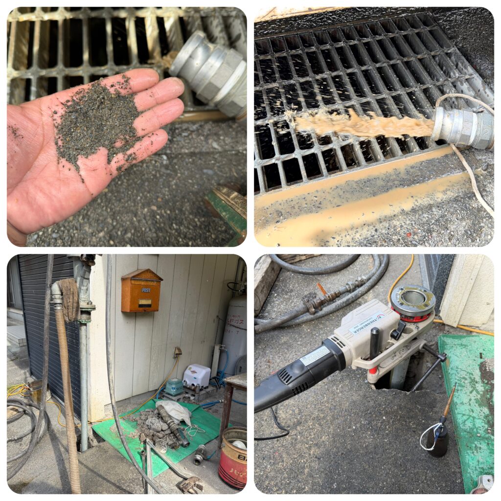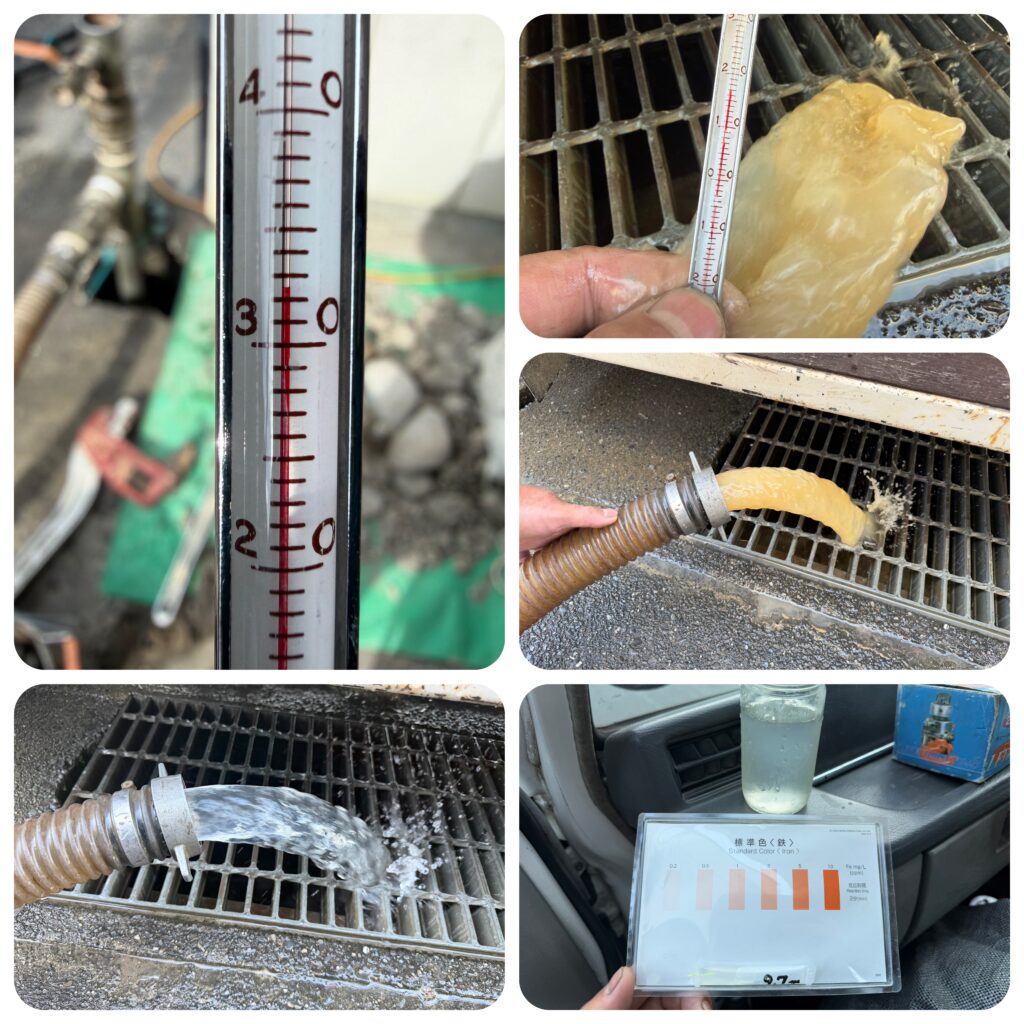1本目の5.5mでは水量が乏しく砂も多く排出されました。