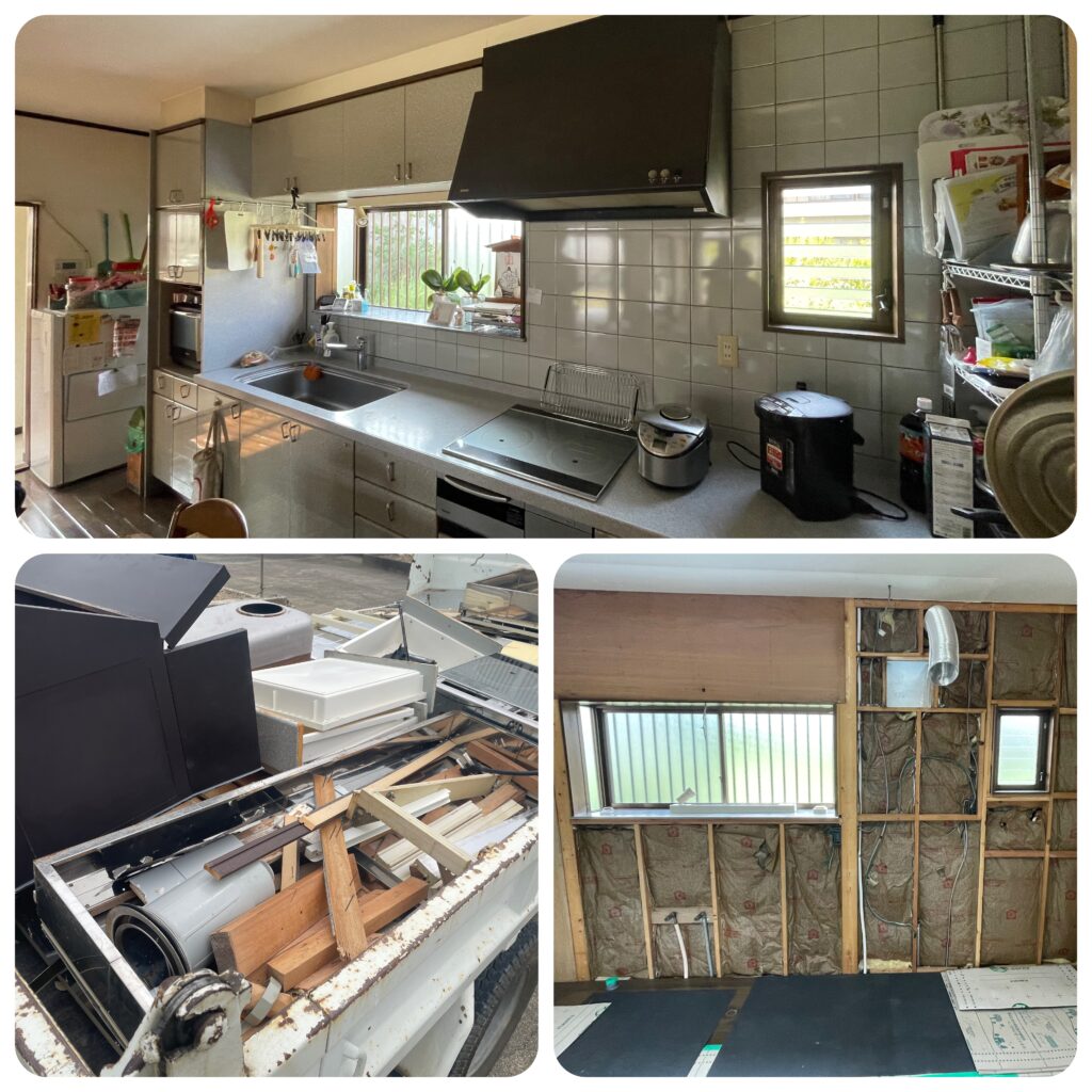 既存のキッチンを解体した後にタイル貼り壁を捲りました。