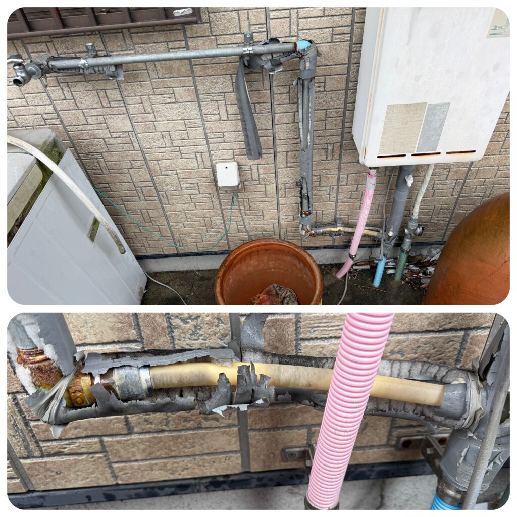 全体がいつまで持ち堪えれるか微妙だったので、今回は部分補修で済ませ、将来的に水漏れ再発の懸念があることをお伝えさせていただきました。