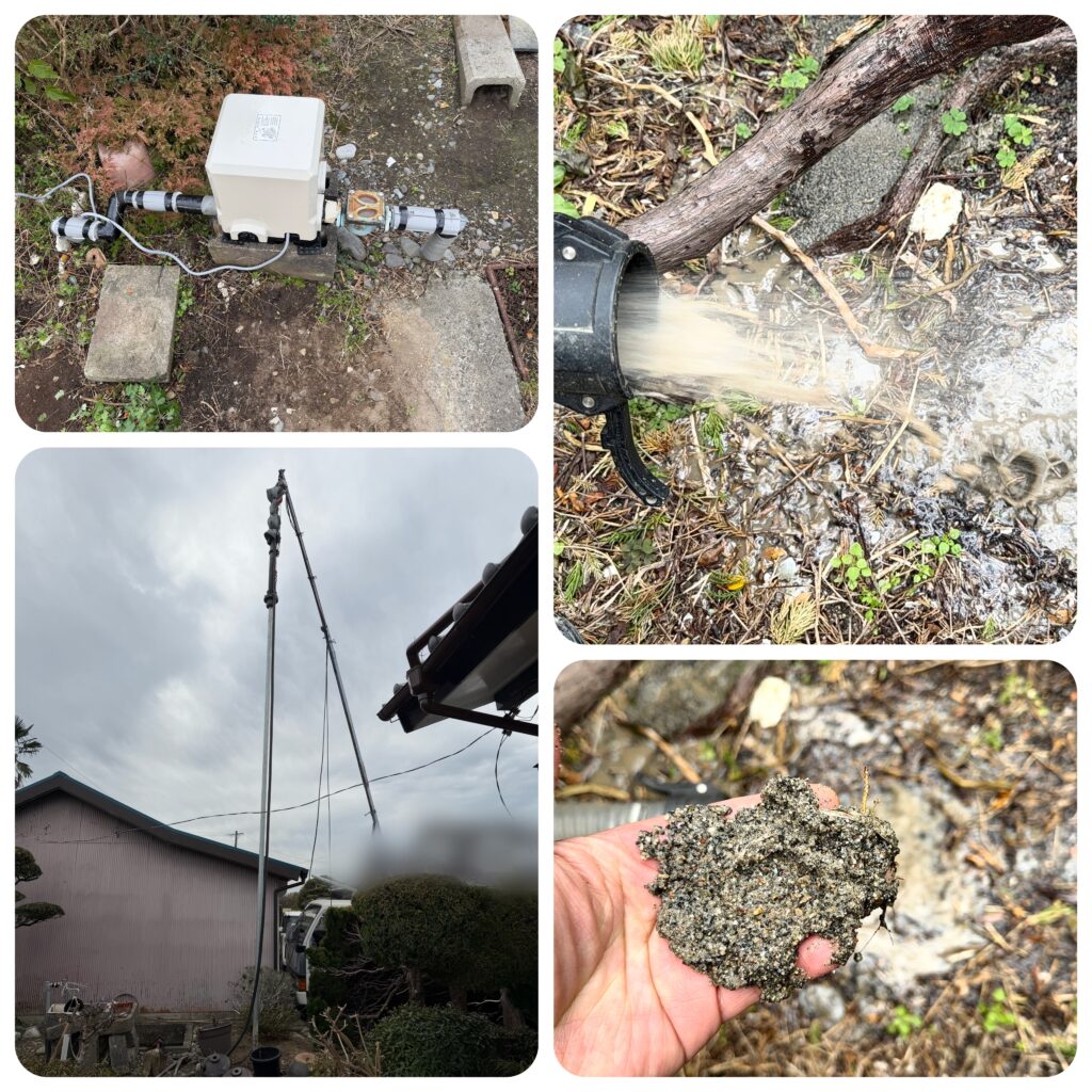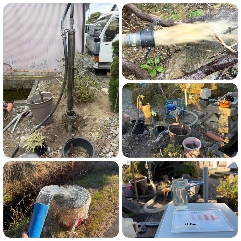 地下水が汲めなくなり井戸ポンプを新しくされたようですが、汲み始めだけエアー混じりの水が出て連続揚水できないとの事です。