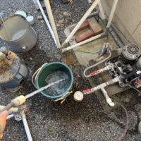 井戸水が出なくなってしまったので、お客様が水道業者に連絡したところ、古くなったポンプが悪いだろうと新しいポンプに交換したそうですが水は出るようにはならなかったようです。
