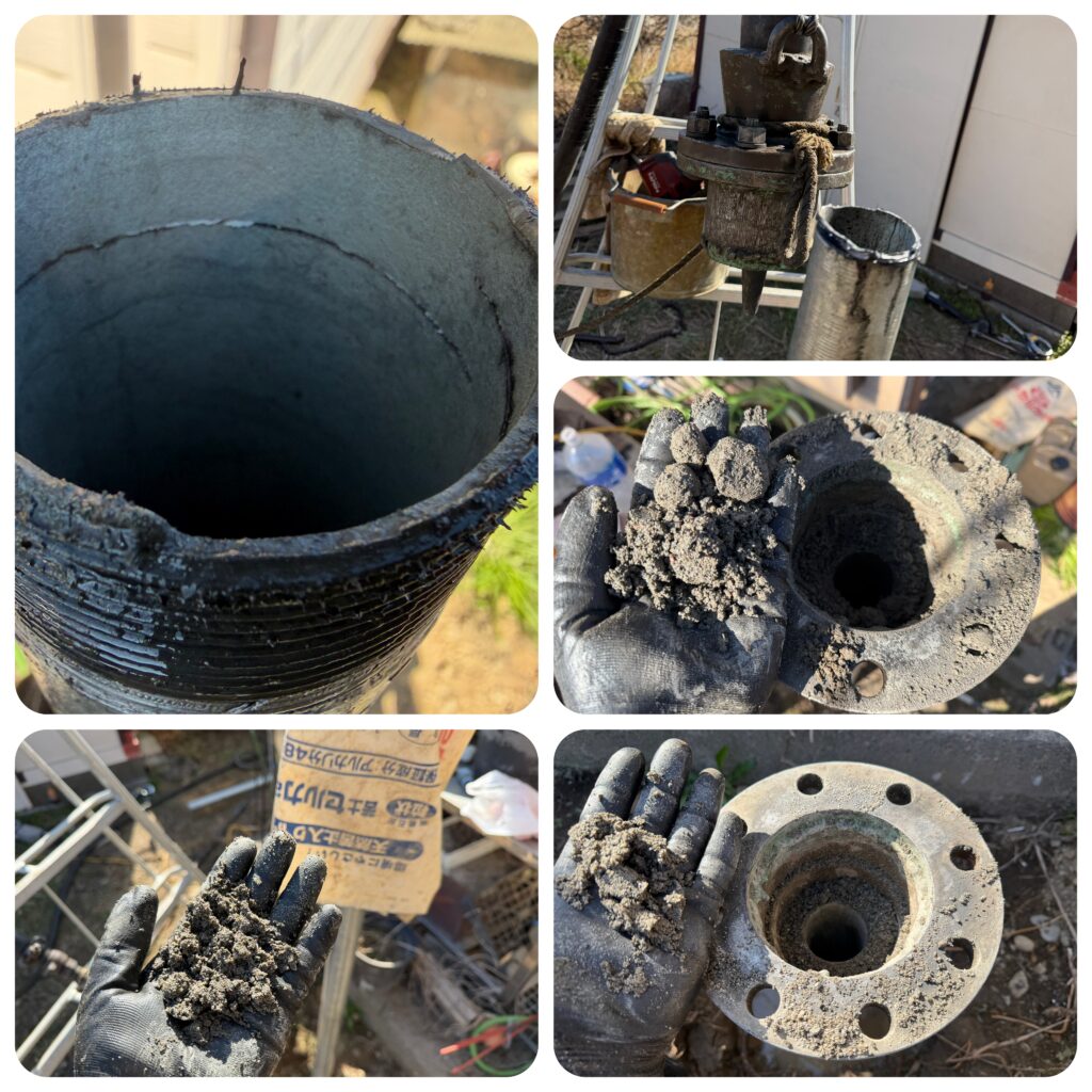 先端が潰れている割には揚水時の砂の排出は殆ど無く、どうなっているのかとても気になるところではあります。