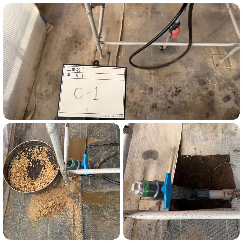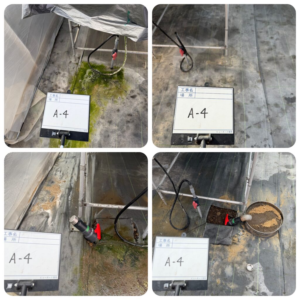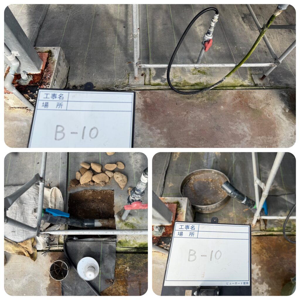 管末に液肥のカスが溜まってしまうことで末端の分岐が詰まり気味になってしまうようです。