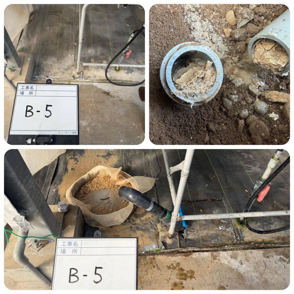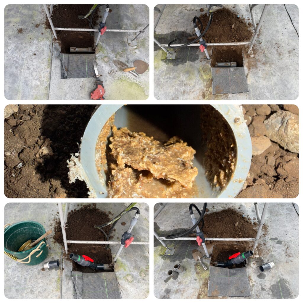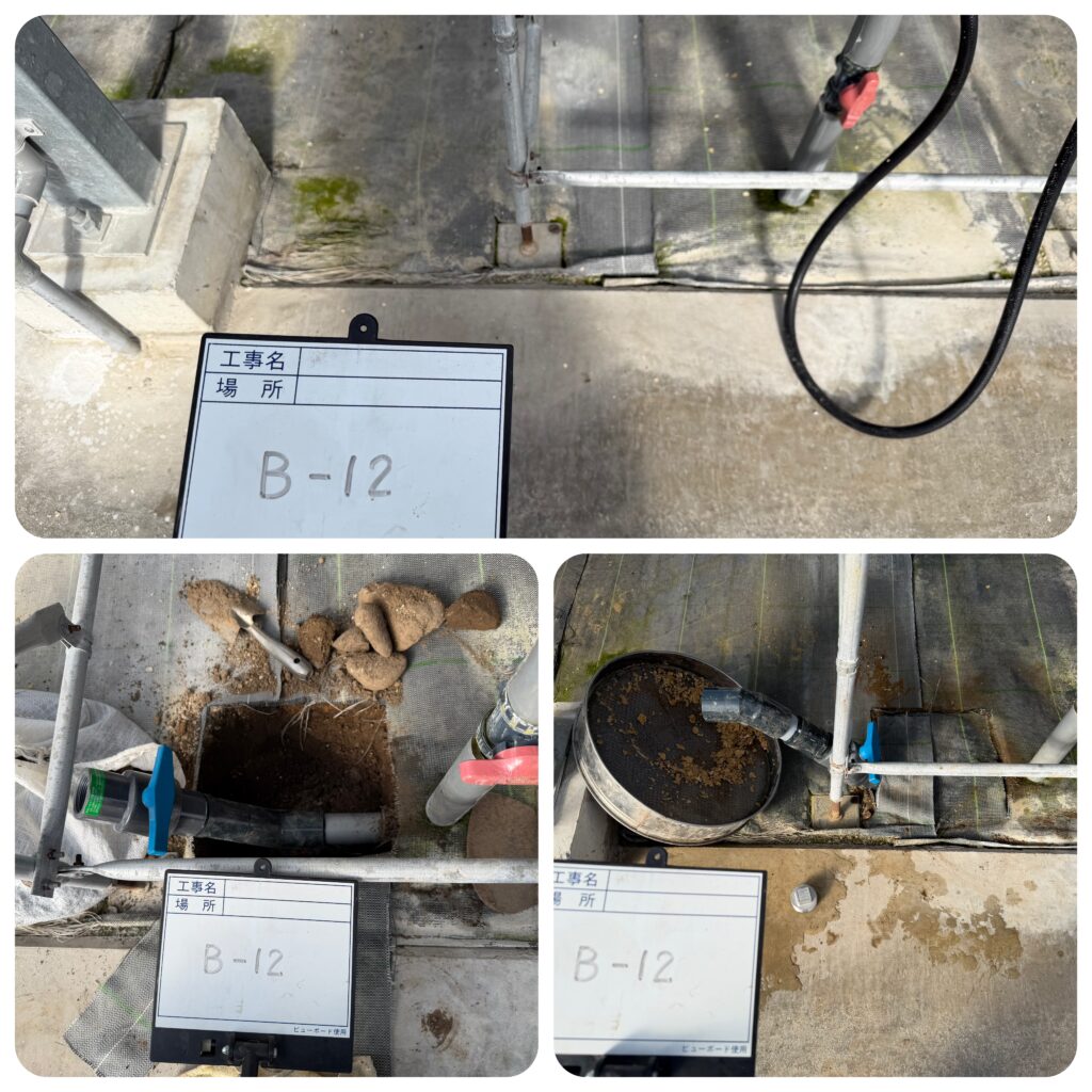 管末に液肥のカスが溜まってしまうことで末端の分岐が詰まり気味になってしまうようです。