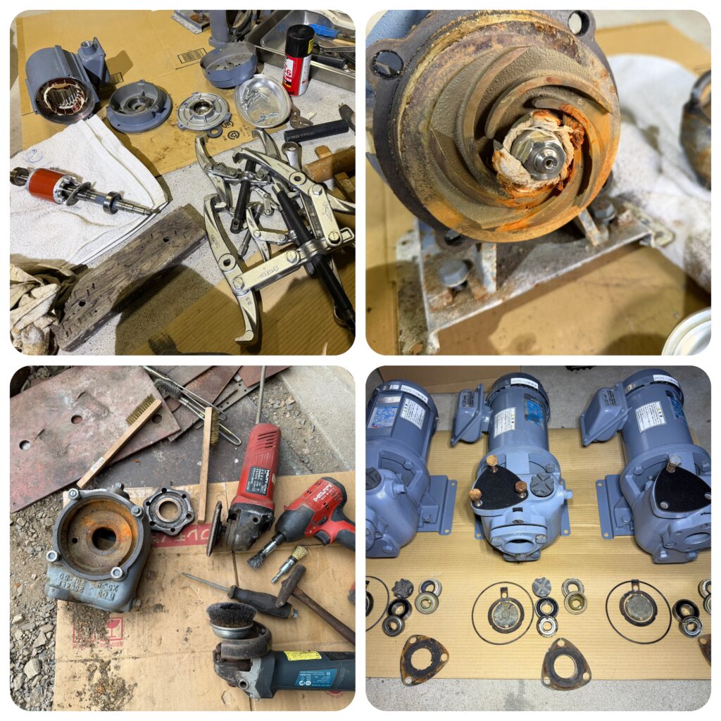 交換後の廃棄用ポンプを、予備としてメンテナンスさせていただきました。