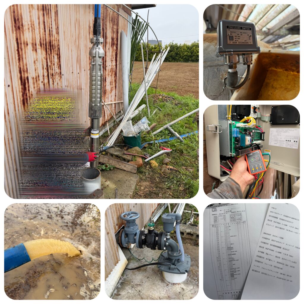 平成10年に井戸鑿掘させていただき、その時に設置した水中ポンプが水を汲み上げなくなってしまったようです。(※現在は深井戸施工は承っておりません)
